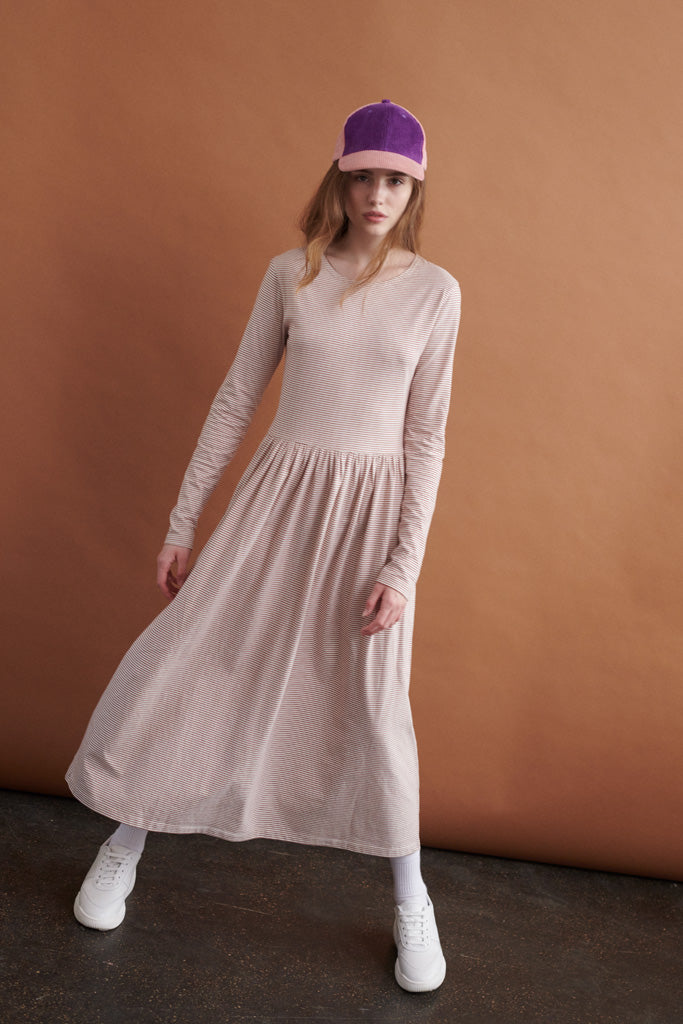 Emma Kleid in braun/weiss gestreift für Frauen