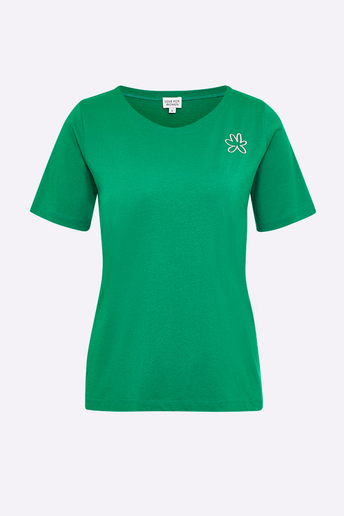 Balthasar T-shirt in Grasgrün mit Blumen Stickerei für Frauen